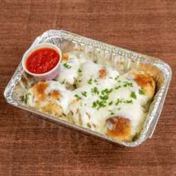 Our Garlic Knots covered with premium Mozzarella cheese and baked to perfection. Served with our Marinara sauce.