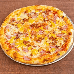Pizza Sauce, Mozzarella Cheese, Bacon, Extra Cheese, Canadian Bacon and Pineapple.
