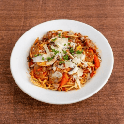 A mix of Sweet Italian sausage, mixed bell peppers and portabella mushrooms tossed in our homemade Marinara sauce with a fresh Garlic bread.
